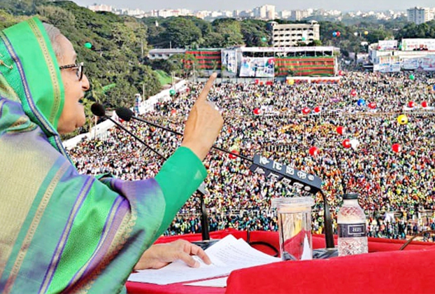 আওয়ামী লীগ সভাপতি বলেন, বিএনপি দেশের ক্ষতি করে আর আওয়ামী লীগ ক্ষমতায় এলে দেশের উন্নয়ন হয়। এই চট্টগ্রামে আমরা ব্যাপক উন্নয়ন করেছি। শেখ হাসিনা বলেন, আমাদের বিদ্যুৎ নিয়ে কিছু দিন কষ্ট হয়েছিল। ভবিষ্যতে আর হবে না ইনশাল্লাহ। তবে আপনাদের কাছে অনুরোধ, সাশ্রয়ী হতে হবে। বিদ্যুৎ ব্যবহার সীমিত করতে হবে। আপনারা জানেন না, এই শীতকালে ইংল্যান্ডসহ বিভিন্ন দেশের কী অবস্থা। সেসব দেশের মানুষ গরম পানি পাচ্ছে না। তারা রুম হিট করতে পারছে না। এক রুমের মধ্যে সমস্ত পরিবার নিয়ে থাকতে হচ্ছে। দোকানে গেলে জিনিস কিনতে পারে না। হয়ত এক প্যাকেট জিনিসের বেশি একটি পরিবার কিনতে পারবে না। এমন অবস্থা তাদের। আমি বলতে চাই, বাংলাদেশে এই অবস্থা হবে না। আমরা মানুষের সবরকম সুযোগ-সুবিধা অব্যাহত রাখব। কিন্তু আপনাদের সহযোগিতা চাই।